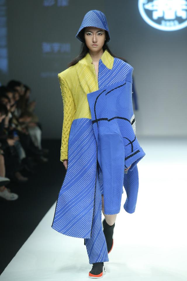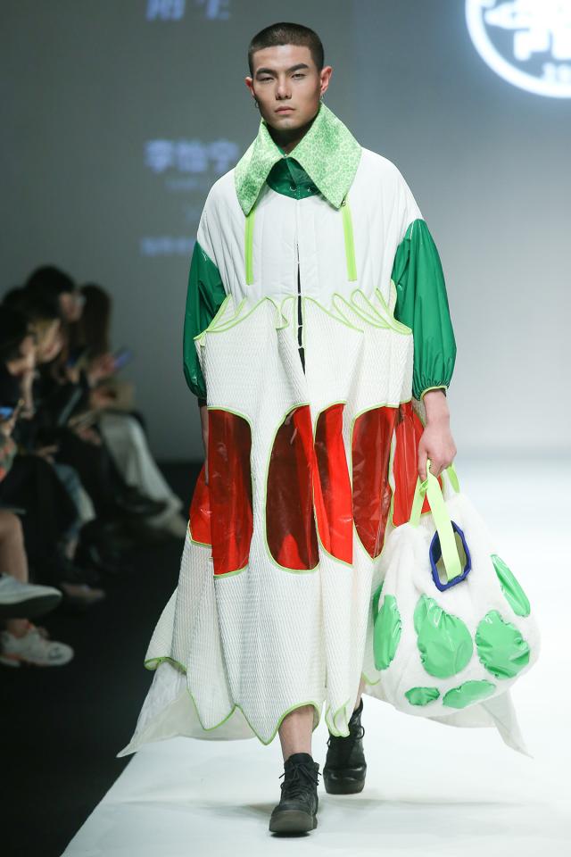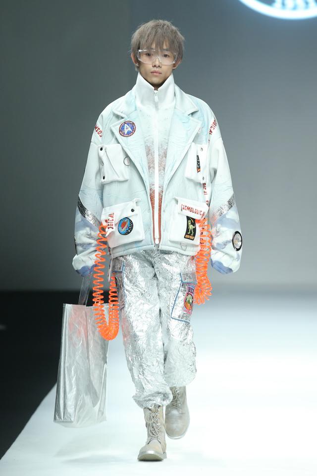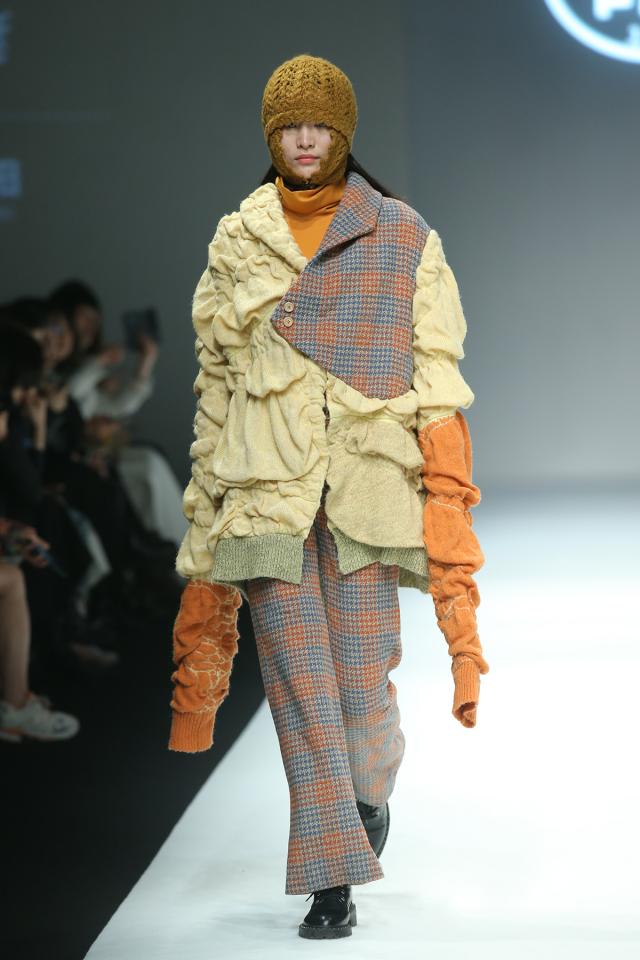设计作品有的结合传统手工艺技法与现代裁剪工艺,表达对传统文化的尊重与热爱;也有根据自己的成长环境与亲身经历,用独特的面料语言、结构特色与造型风格,再现旧时代的时尚趣味;还有运用不同面料肌理的再造与结构重组,夸张巧妙的设计手法传递设计师真实的价值诉求与内心独白。新锐设计师敢于尝试,敢于创新,超越艺术的界限,建立自己个性鲜明的服装语言,设计作品或夸张,或浪漫,或怪诞,或繁复,充分展现了当今东西方服饰文化博弈交融下的服装设计风格,流露出新锐设计师们对艺术设计的时代性感悟与思考。
