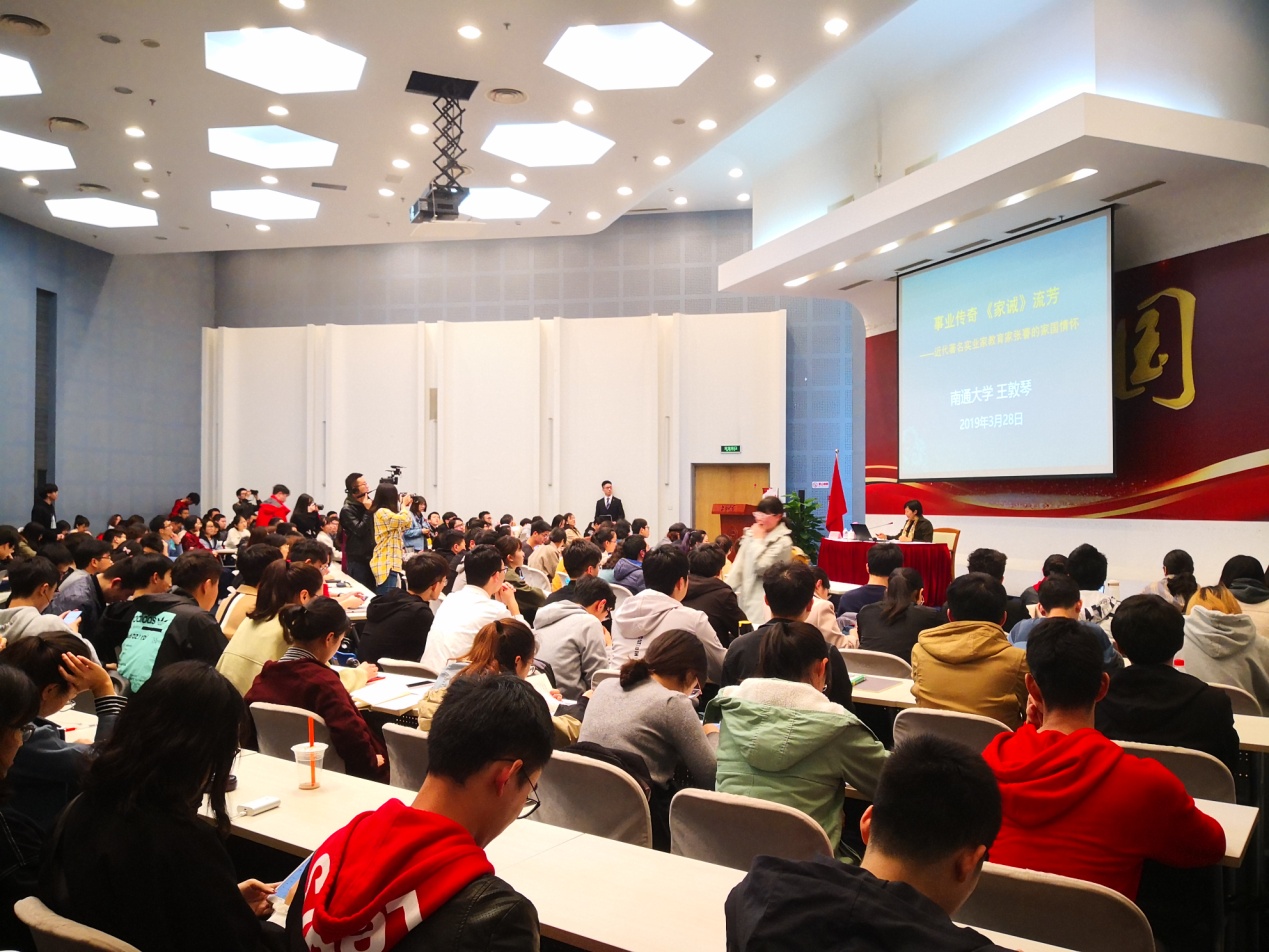 王敦琴教授聚焦张謇留存后世子孙的《家诫》,既分析其中蕴含的7位古代名人的家风内涵,又结合他个人经历阐述了编排《家诫》的家教初心,及对后世子孙的重要影响。她借用张謇的话寄语我校学生:“天之生人也,与草木无异,若遗留一二有用事业,与草木同生即不与草木同腐。”