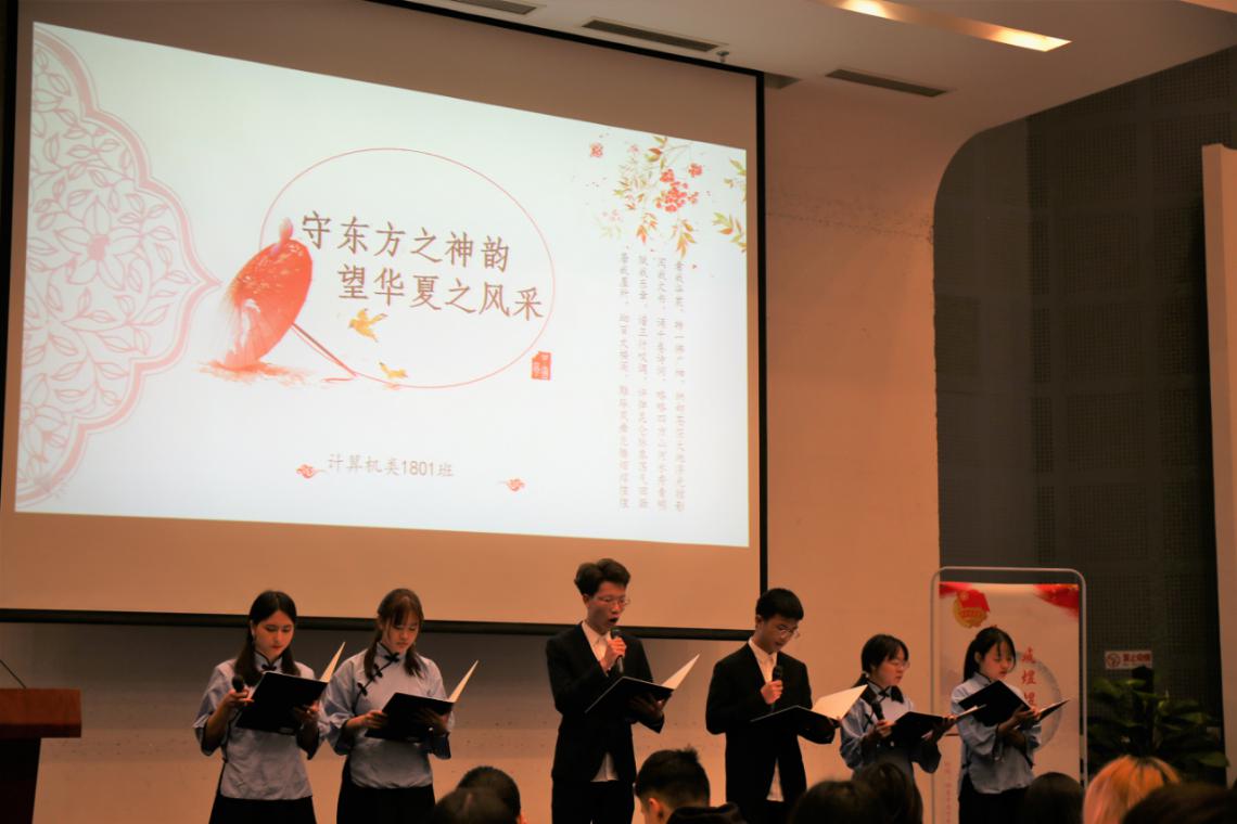 近日,计算机科学与技术学院“承浩浩中国魂,筑煜煜少年梦”庆祝新中国成立70周年、五四运动100周年专题朗诵会于在图文中心第二报告厅举行。活动分为“文化传承”“科技强国”“逐梦未来”三个篇章。