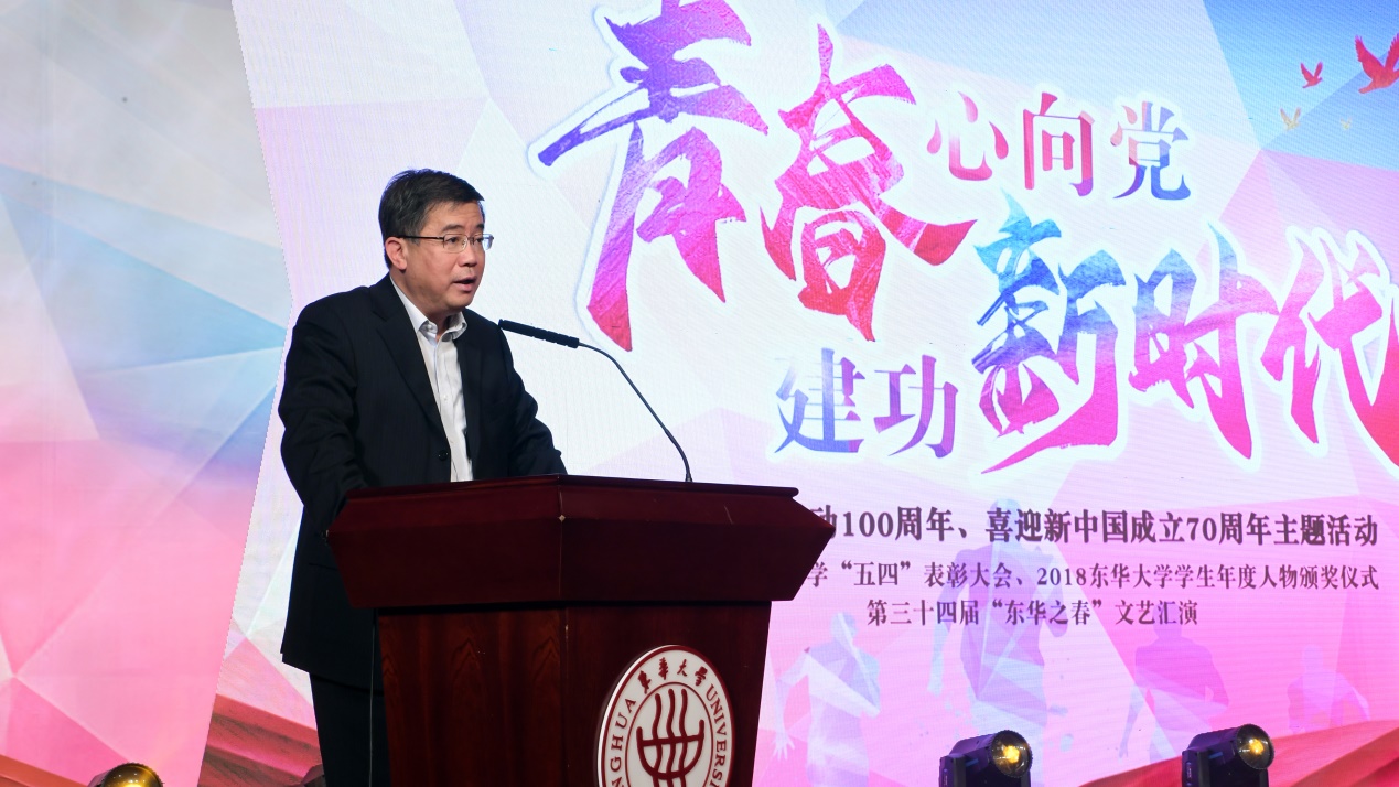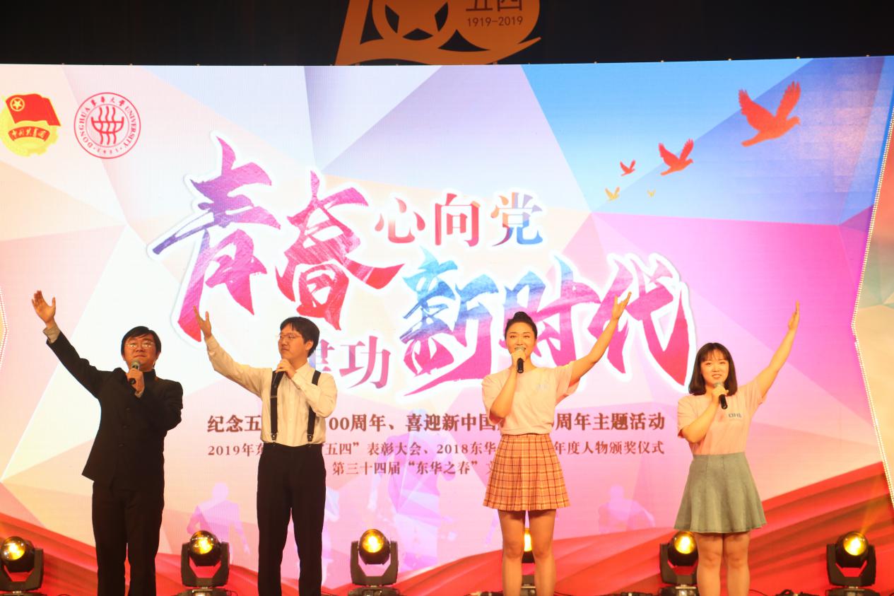 “青春心向党 建功新时代”我校纪念五四运动100周年、喜迎新中国成立70周年主题活动在松江校区举行。校党委书记朱民、校党委副书记刘淑慧出席,相关职能部门负责人、各学院党委副书记、全体专兼职团干部、获奖先进个人与集体代表以及青年团员代表共千余人参加活动。