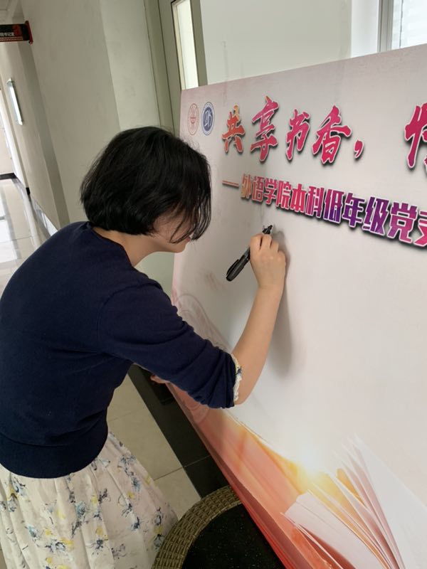 “同‘学’互‘进’促党建发展”。为庆祝建党98周年,外语学院突破以往支部界限,实施“师生共建”和“本研共建”模式,2019年4月25日,学院本科低年级党支部与英语系教师党支部、研究生党支部联合开展“读经典革命文学忆往昔峥嵘岁月”系列学习活动。师生共同参与,交流读书心得,丰富知识储备,分享学术经验。力求搭建教师及学术党员学术研讨、交流的平台,浓厚党组织内学术研究和学术交流的氛围,切实有效提升了学生党员自身的学术思考力和表达力,使广大党员拓宽研究视野,切实提升科研创新能力。