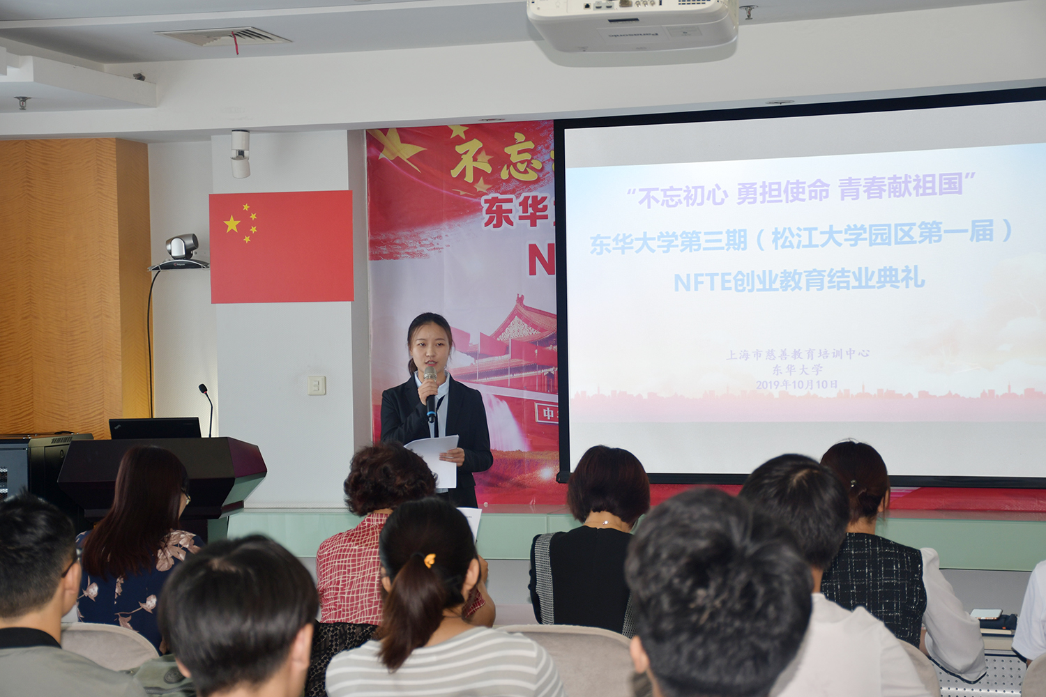 典礼上,培训班班长梅言玉同学回顾了本期课程,郑腾同学展示了优秀商业计划书,优秀学员代表缪应容同学也交流了自己的在培训班的学习收获和体会。上海市慈善教育培训中心创业教育办公室主任张燕对前三期的培训工作做了总结,展示分享了历届学员的创业实践丰富成果。