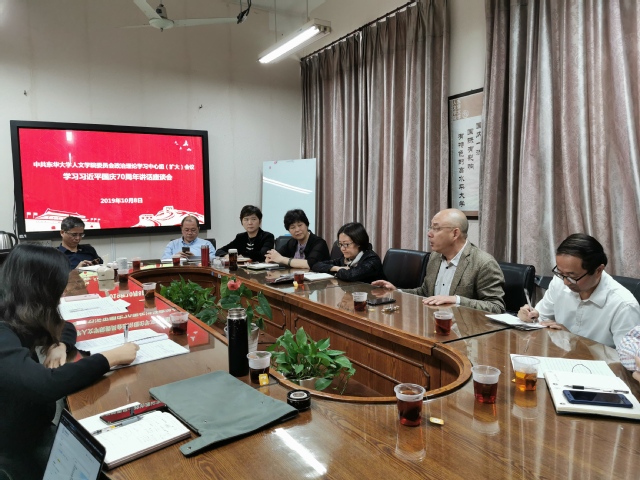 为深入学习领会习近平总书记在庆祝中华人民共和国成立70周年大会上的讲话精神,10月8日,人文学院召开党委理论学习中心组(扩大)学习会,组织学院党委班子成员、教师与学生代表,围绕习近平总书记在庆祝中华人民共和国成立70周年大会上的重要讲话精神,畅谈学习体会,分享观看庆祝大会和阅兵式的感想与收获。党委副书记刘淑慧出席会议,会议由人文学院党委书记王英主持。
