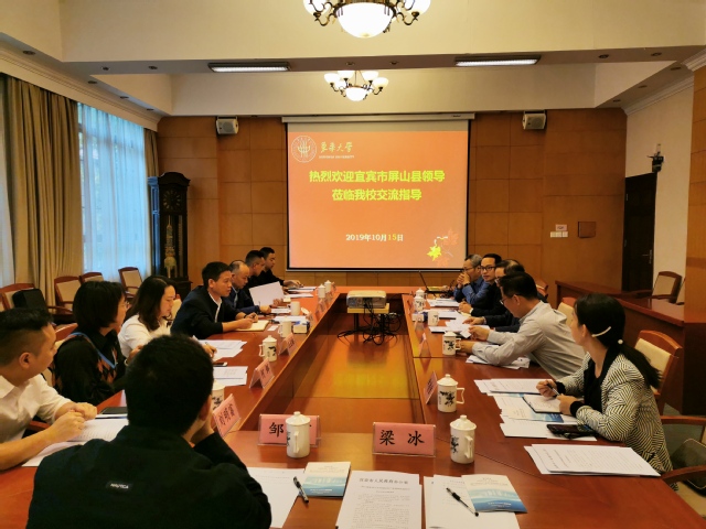 10月15日,四川省宜宾市屏山县委常委、县工业园区管委员会副主任徐轶一行7人来校交流,并对接科技合作事宜。副校长陈南梁出席,科研处、科技成果转化中心和纺织学院等相关同志与会,上海市科委创新服务处相关负责人受邀到会指导。