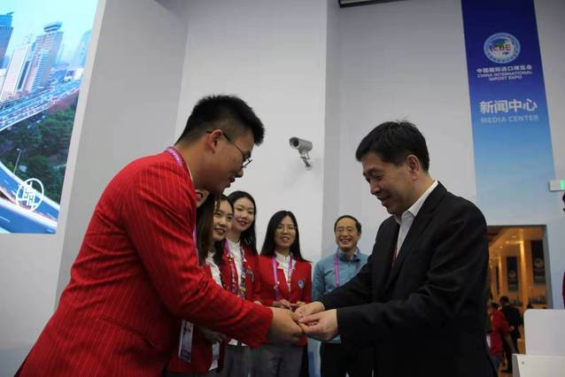 俞建勇一行还参观了进博会上的东华印记。机械工程学院陆金生教授领衔的师生团队设计的标识导航指引参展方向,第二期非遗研修班学员的苗绣旗袍娃娃向世界展示中国传统文化,东华身影“小叶子”用志愿奉献的青春告白祖国……