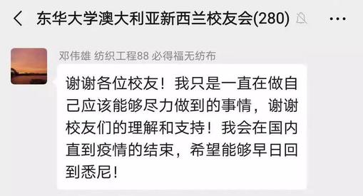 (当群内校友纷纷向邓伟雄致敬并表示等其回澳为其接风的时候,他如是说)