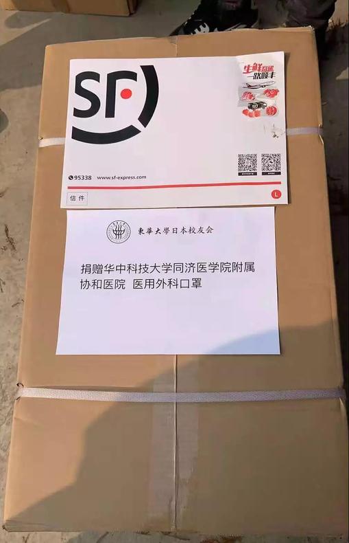 1月25日,大年初一,一个在所有华人心目中非常重要的日子。早上八点,日本校友会理事会微信群里就热闹非凡,大家你一言我一语不是为了拜年,而是筹划如何帮助远在千里之外的武汉同胞。在会长王菁的领导下,“90后”秘书长许超勇挑重任,很快拟好了倡议书并进行了动员,王菁、许超、周春燕、阳玉球、罗湘君、邵博华、刘军、陈小钦、费忠海、刘雁、沈彦虹、周国瑛和江洁等15位校友旋即捐赠了累计10万余日元。原本想将钱款捐赠给武汉红十字会,后来为了物资能更快到达一线医护人员手中,他们决定自行采购寄送。彼时,副会长谷志杰身为中国留日同学总会副会长,正忙于成立赈灾小组,密切联系中国慈善总会、中国红十字会,协调近百万元紧缺医疗物资运送到湖北的事宜,分身无暇。理事会仅剩4人,因假期散落各地只能通过线上联系,对于刚刚成立半年有余、成员之间尚未完全熟稔的新校友组织而言无疑是一个巨大的挑战,跨越了国境,采购、联系、寄送每个环节都比起在国内更加麻烦。联系好的供应商突然告知没货,无论日本还是国内防护物资都极其紧张,几经周折,发动亲朋好友,终于许超通过朋友采购到了第一批防护物资-2000只医用外科口罩,并于2月3日发往亟需防护用品的华中科技大学同济医学院附属协和医院。而他们并没有就此止步,马上又投入到了第二批物资的联络采购中。