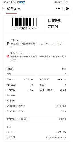 (快递至上海的N95口罩及当天发往湖北孝感的快递单)