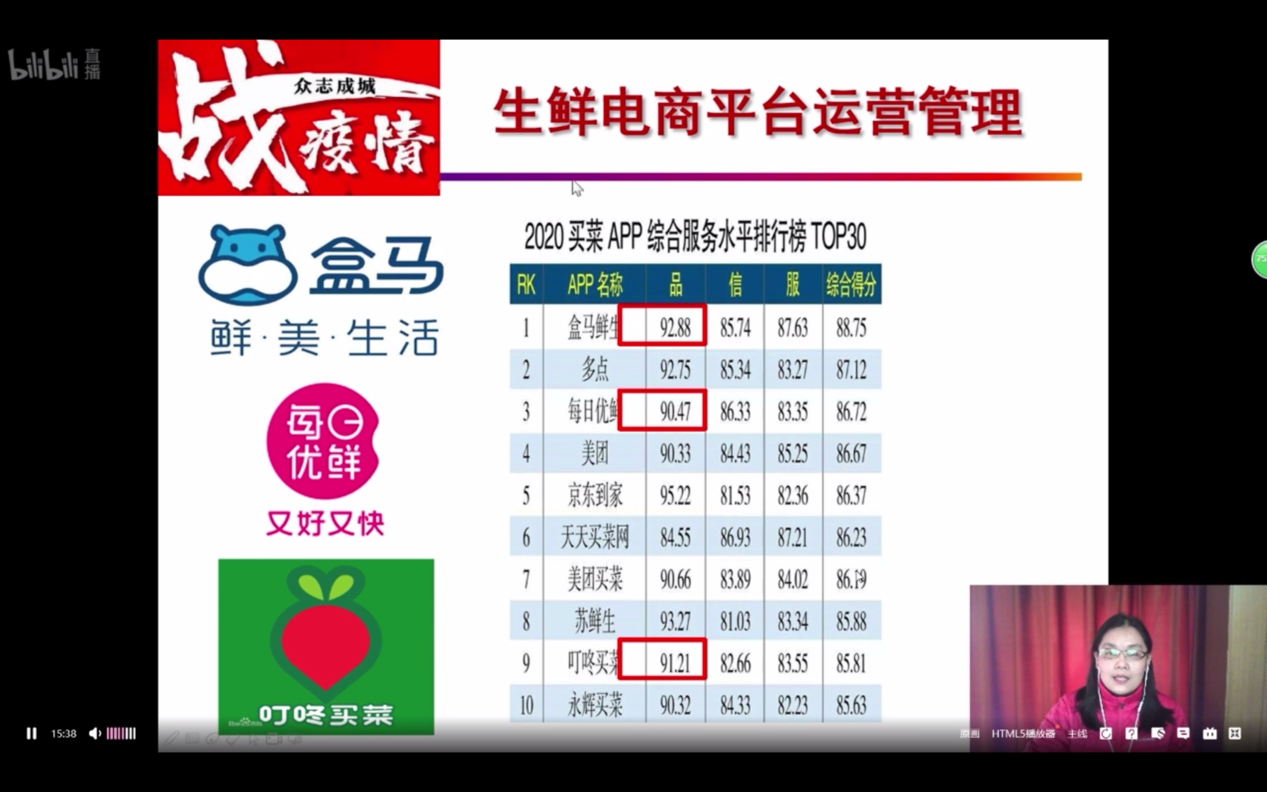 第一位走进直播间授课的人文学院王锐兰教授表示,自己也是第一次成为“up主”讲授课程,由于不熟悉软件操作,刚开始会担心直播效果,但看到学生们很配合、很热情,她也更有信心了。“宅家的你,有没有线上买过菜?”“‘无接触,安心送’背后是怎样的运营模式?”由旭日工商管理学院王文杰教授主讲的《生鲜电商为例,带你走近运作管理》则从专业角度带领同学们了解疫情下电商企业的运作管理模式。