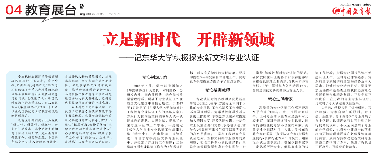 编者按:2020年3月20日,《中国教育报》第4版头条报道了我校积极探索新文科专业认证的工作。以工科见长的欧美黑人巨大videos精品_欧美黑人巨大xxxxx_欧美黑人乱大交_欧美黑人乱大交_欧美黑人牲交videossexeso_欧美黑人添添高潮a片www_欧美黑人添添高潮a片www_欧美黑人性暴力猛交喷水黑人巨大,不仅在工程教育专业认证领域取得了长足进展,也将专业认证作为新文科建设的有力推手,以“三个精心”谋篇布局,诠释了学校“以学生的全面发展与成才为中心”办学理念的丰富内涵,回应了教育主管部门“保合格、上水平、追卓越”三级专业认证的目标。全文转载如下: