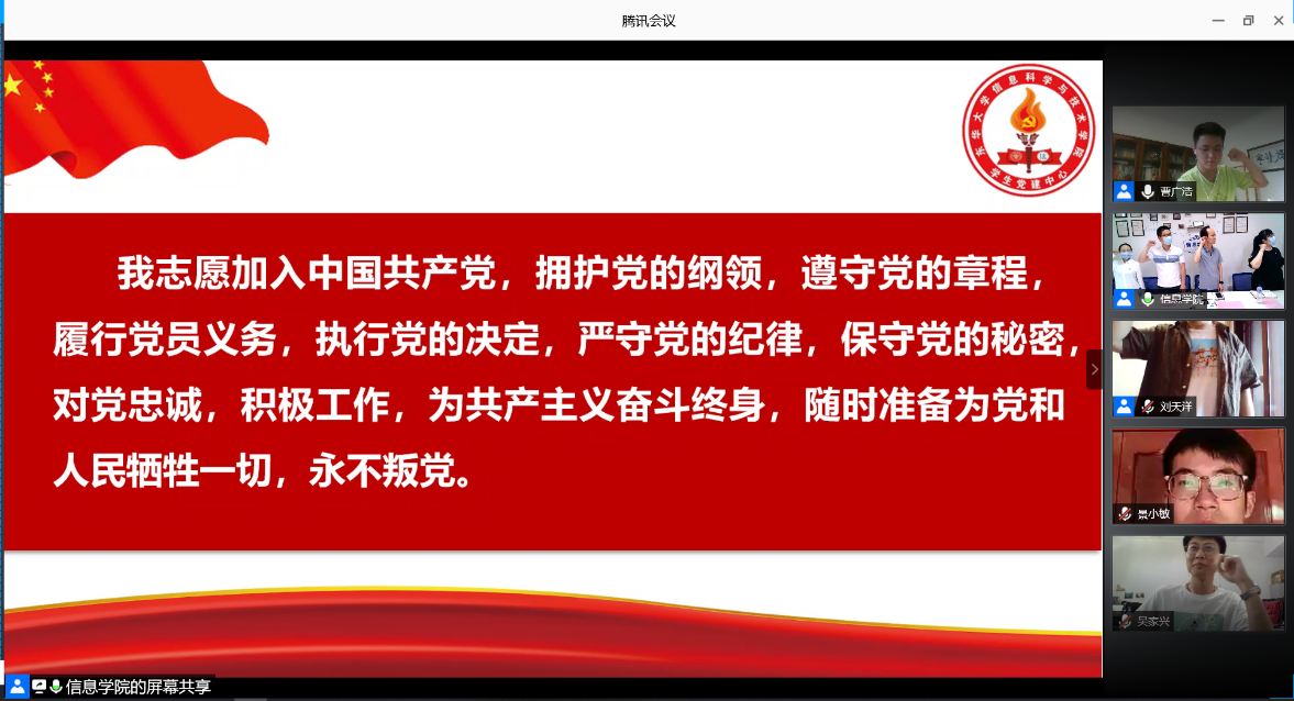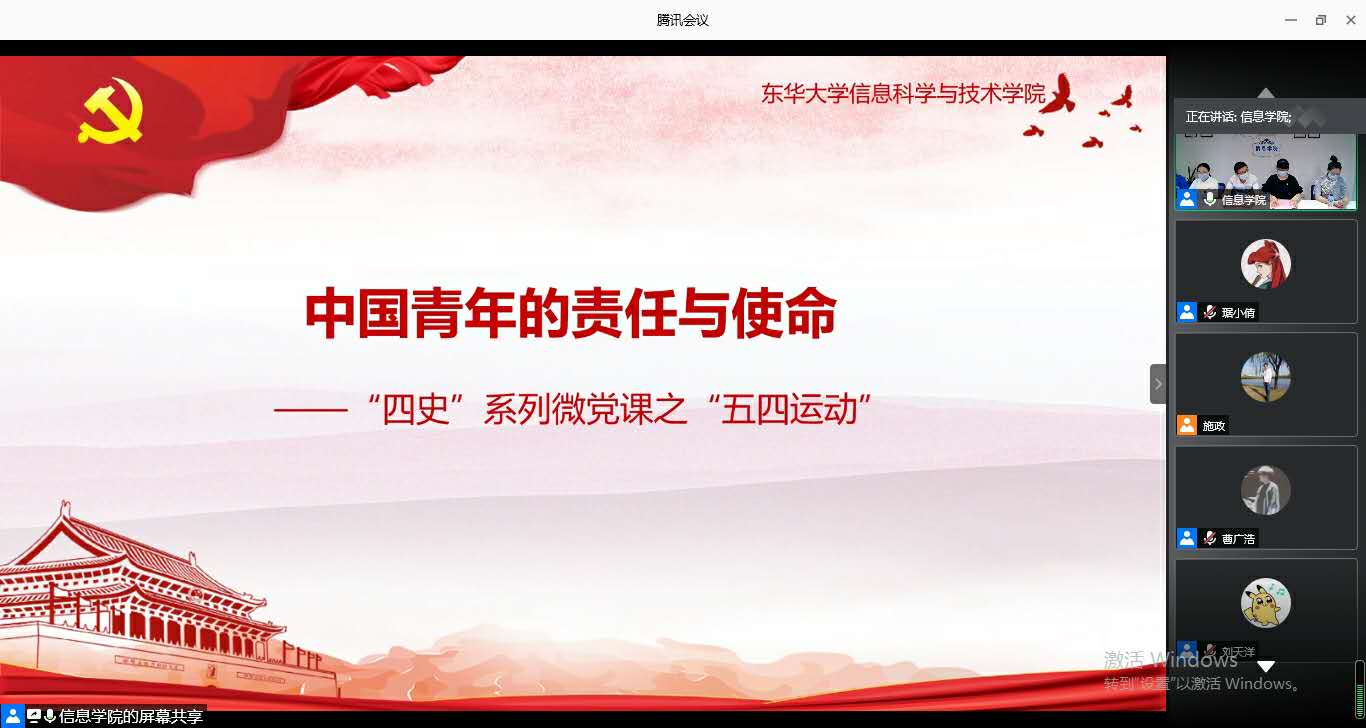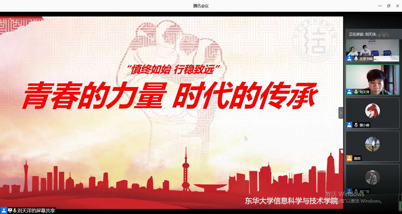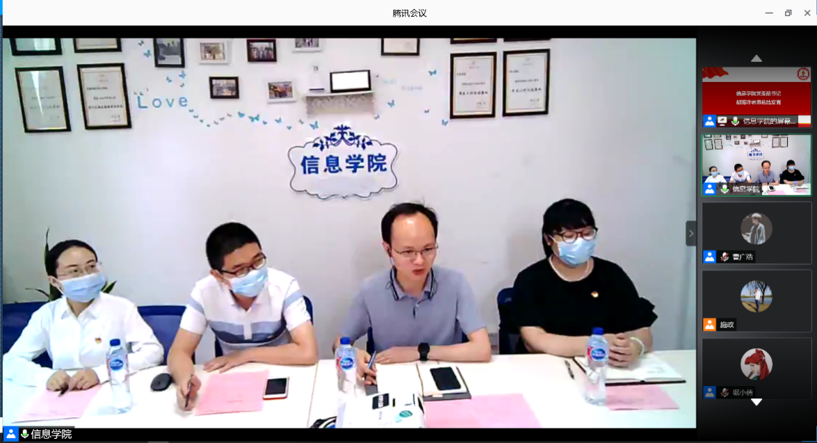 6月9日,信息学院党委以“四史”学习教育为契机,面向学院全体毕业生党员组织开展“四史”学习主题党课暨“慎终如始 行稳致远”毕业生党员离校教育主题活动。信息学院党委副书记胡海洋、学生工作办公室主任郭姗、专职党务干部夏菡斐出席活动,自动化系教工党支部全体教师党员、学生党支部全体师生党员100余人在线上参加活动。活动由学生党建辅导员施政主持。