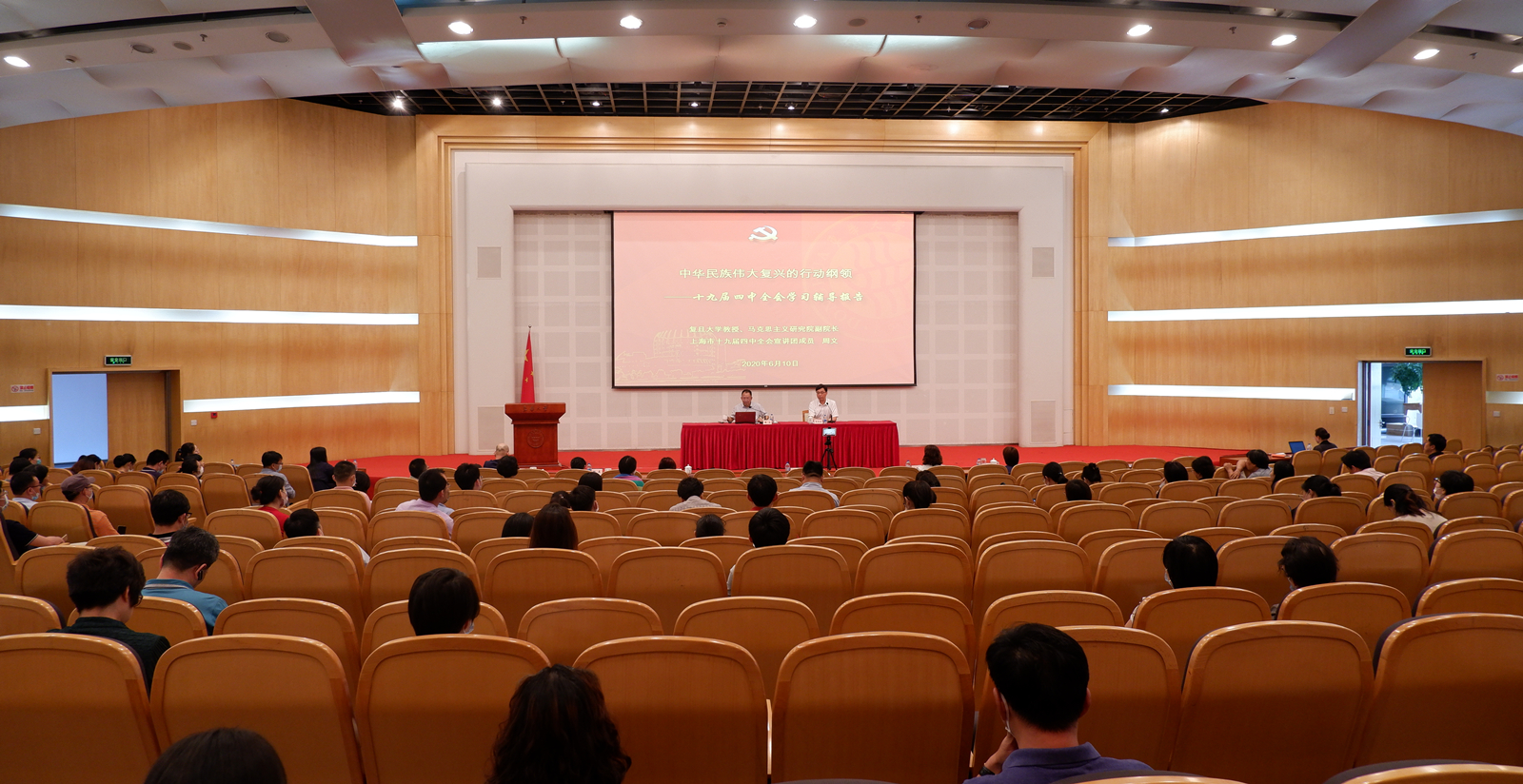 6月10日,学校在松江校区举行“深入学习贯彻党的十九届四中全会精神”专题培训暨党委理论学习中心组(扩大)学习会,延安路校区设视频分会场,邀请复旦大学马克思主义研究院副院长、上海市学习贯彻党的十九届四中全会精神宣讲团成员周文教授作辅导报告,党委书记刘承功主持报告会。