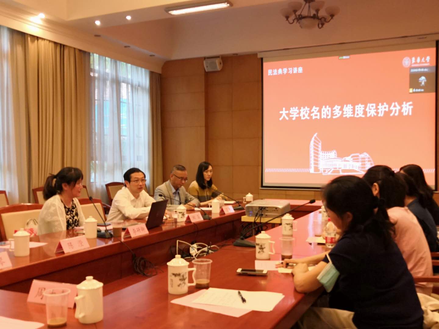 为贯彻落实《中共中央宣传部等关于加强民法典学习宣传的通知》《教育部关于进一步加强高等学校法治工作的意见》等文件精神,9月25日,学校举行民法典学习专题讲座,邀请我校人文学院99级校友、普陀区人民法院知识产权庭李研卿法官来校为师生作题为“民法典学习:大学校名的多维度保护分析”的讲座。副校长邱高出席并讲话,法务办公室、人文学院法律系、相关职能部处、二级学院院办、校办延安路校区办联合党支部、教工团委等近百名师生通过线上线下参会。
