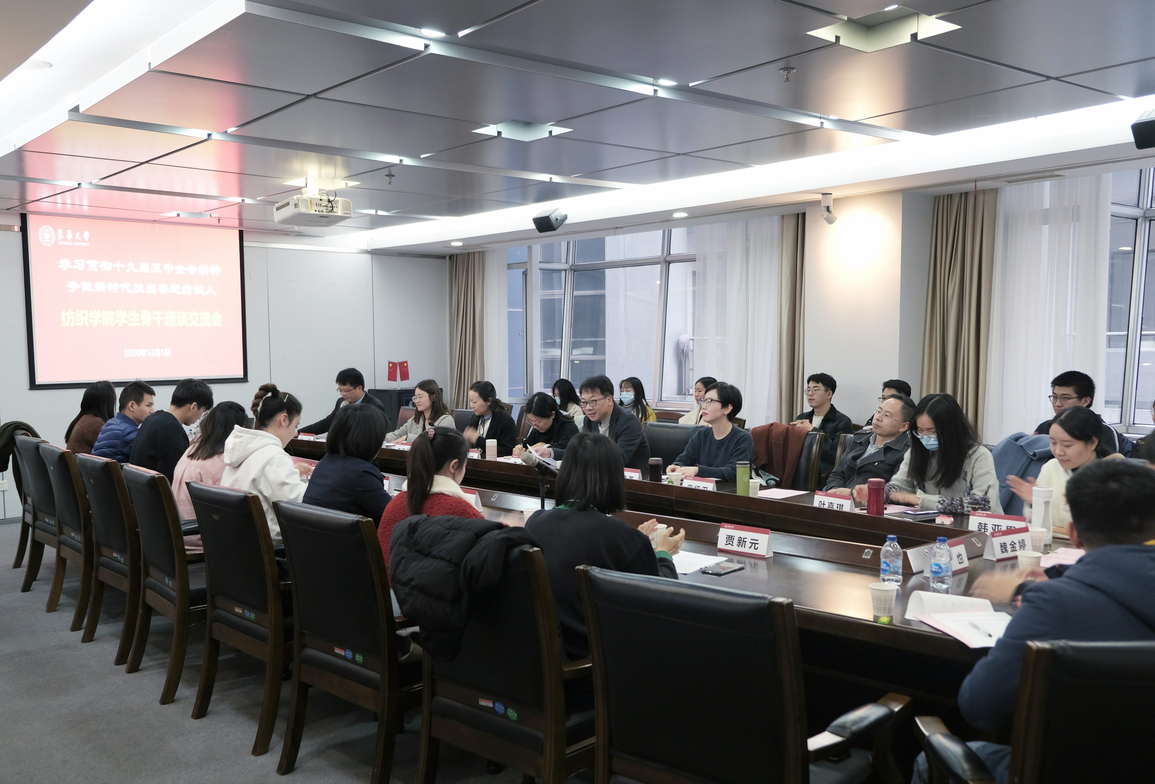 为深入学习贯彻党的十九届五中全会精神,充分发挥学生骨干的示范带动作用,教育引导广大党员和团员青年把智慧和力量凝聚到“十四五”发展新征程和纺织一流学科建设上来,12月1日,纺织学院党委举办“学习贯彻十九届五中全会精神,争做新时代担当奋进纺织人”学生骨干座谈交流会。学院党委书记李成龙、党委副书记刘雯玮与各学生党支部、团学组织等青年师生代表参与本次活动。