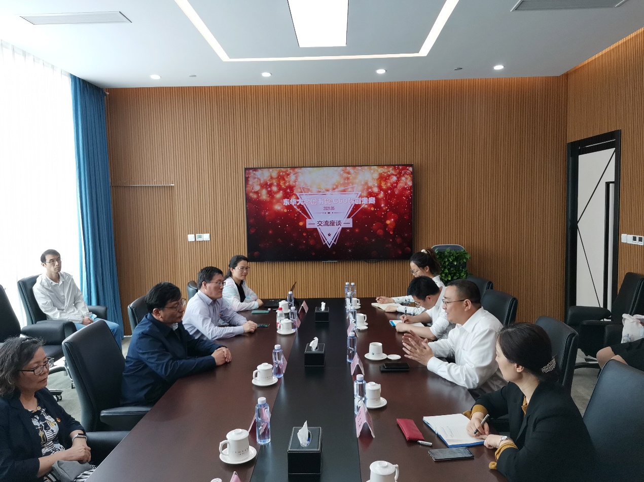 参观结束后,长三角G60科创走廊联席会议办公室副主任、产业组组长潘宏凯等5位相关负责人与图书馆党员们进行了交流。潘宏凯介绍了长三角G60科创走廊入驻科创企业情况、联席办的主要职能、九城市之间的发展联动情况,以及近期工作取得的成效。图书馆第三党支部书记吴素坤介绍了图书馆面向企业科技创新的科技查新和知识产权信息服务。潘宏凯等表示,科技查新和知识产权信息服务对科创企业具有至关重要的作用,为企业科技创新保驾护航。双方还就加强长三角G60科创走廊促进成果转化、科研软课题研究合作、文献资源共享等内容进行了深入交流。