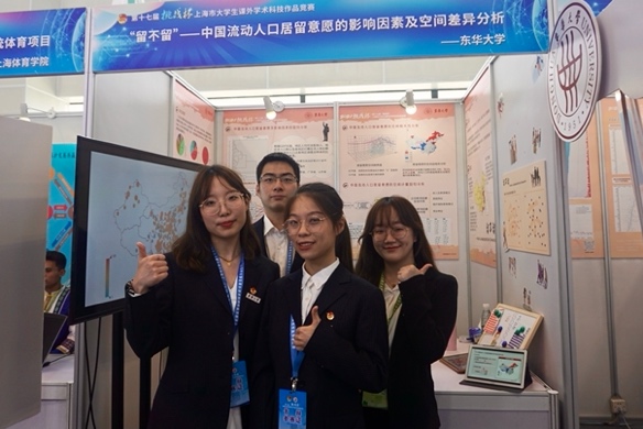 管理学院的“‘留不留’——中国流动人口居留意愿的影响因素及空间差异分析”项目获得上海市一等奖。团队通过对2016年全国流动人口动态监测调查数据的详尽分析,得出了我国居留意愿空间分布东西方向U型分布,南北方向上北高南低的结论,作品在与通常认知有出入的同时为流动人口的分析提供了全新的切入角度,能够为提升城市管理水平以及提出流动人口市民化相关政策做出指导建议,从而促进不同地区间资源的合理分配,进一步加快我国城市化进程。