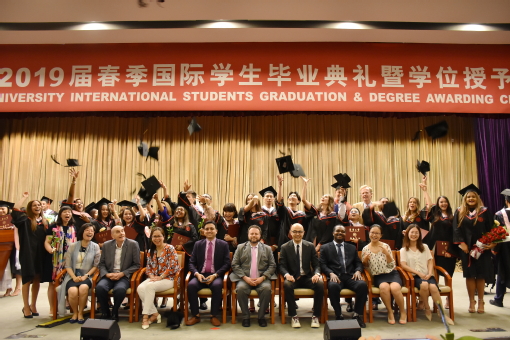 (弗拉兹参加学生的毕业典礼,一排左四)