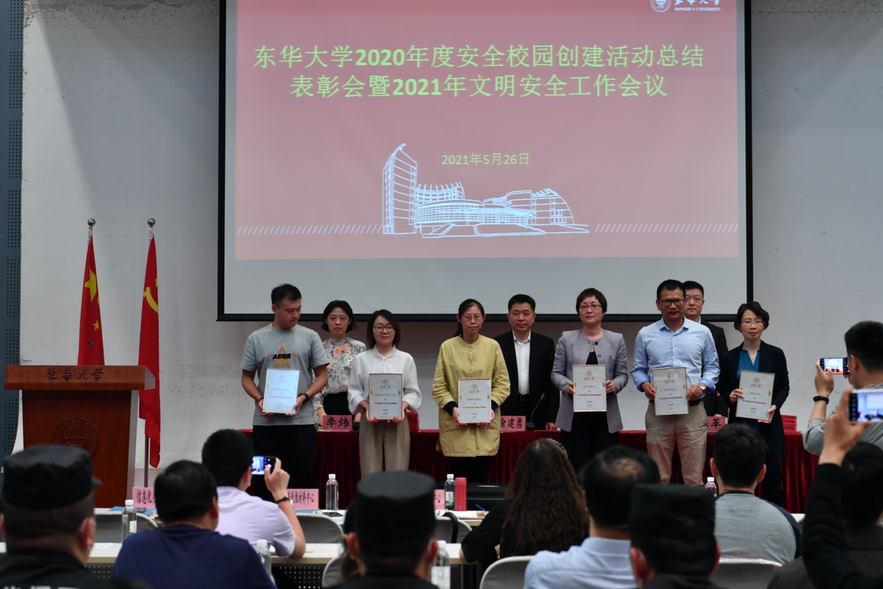 会议表彰了2020年学校安全文明单位和安全工作先进个人,纺织科技创新中心、后勤集团社区管理中心、学生处/学生(研究生)工作部、先进低维材料中心、信息化办公室、机械工程学院实验教学中心等6个集体获评“2020年度安全文明单位”称号,张梦瑶、黄晶、张民德、宋崇伟、姜贻德、王赛等6位教职工获评“2020年度安全先进个人”同时获“优秀安全员”,郑千钧、杨曙光、林婧等42位师生获评“2020年度安全工作先进个人”。先进集体代表等分别作工作交流发言。