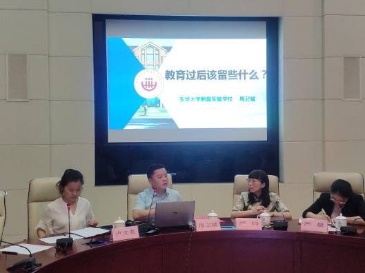 周卫斌以“教育过后该留些什么”为主题,从习近平总书记在全国教育大会上提出的“培养什么人、怎样培养人、为谁培养人”这一根本问题入手,与大家分享了自己从教几十年以来的经验与感悟。他说,在新时代背景下,人民教师的核心素养在于人的发展,关键在于学力提升,驱动在于创新精神。在专家引领的基础上,新教师要学会自我反思,并与同伴互相学习,才能更快提升教学水平。东华附校十分注重学生综合素质的培养,通过经纬文化、经纬课程、动感课堂的建设,丰富学生的校园生活,引导学生建立正确的价值观,从而更好地为党、为国家、为人民,培养社会主义事业的建设者和接班人。他还为介绍了教师资格证考试的要求及松江区教师编制考试的要求与时间,并对同学们关于实习机会、应聘条件等方面的提问作了解答。