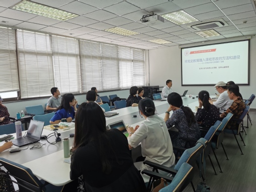 “课堂教学要实现知识性与价值性、学理性与政治性、思想供给与学生获得感相统一……主要介绍六大教学方法:专题式教学法、案例教学法、问题链教学法、情景剧演示教学法、直观教学法、社会实践教学法……”5月31日下午,服装与艺术设计学院的会议室里,马克思主义学院白华山副教授应邀作《将党史教育融入课程思政的方法和途径》的专题讲座,以《中国近现代史纲要》为例介绍了党史教育融入课程思政的路径。学院党政班子成员和近二十位青年教师参加学习。据悉,这次讲座是学院党委中心组学习(扩大)会,也是学院党委在党史学习教育中围绕“我为群众办实事”开展的系列活动之一,旨在为新进教师、青年教师开展专题培训,加强师德师风建设,帮助青年教师立足第一课堂,开展课程思政的有效探索。