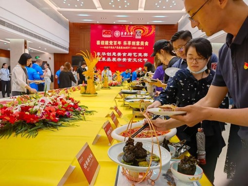 本次活动共有50道创意参赛菜品、50道特色展示菜品供师生代表品鉴,菜品展示分为“回首往昔忆峥嵘”“砥砺奋进铸辉煌”“凝心聚力谱华章”述了中国共产党从南湖红船到巍巍巨轮辉煌发展的历史足迹,寄寓着每一个东华餐饮人对于新时代中国特色社会主义发展的美好祝福。100道美食不仅在寓意上有所考量,更追求菜品的色香味俱全,以高水准的品质和高颜值的造型赢得了师生代表们的广泛好评,参加本次活动的东华大厨们曾在中国高校烹饪技术大赛和上海高校创新菜肴、创新点心大赛等多个比赛中摘金夺银,不仅厨艺精湛,更独具匠心。