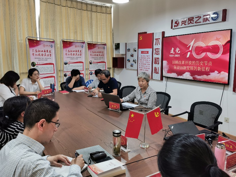 (学院中心组成员分专题进行党史学习研讨,图为常务副院长韦联福领学)