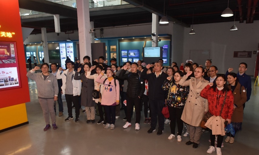(在第八棉纺厂旧址重温入党誓词)
