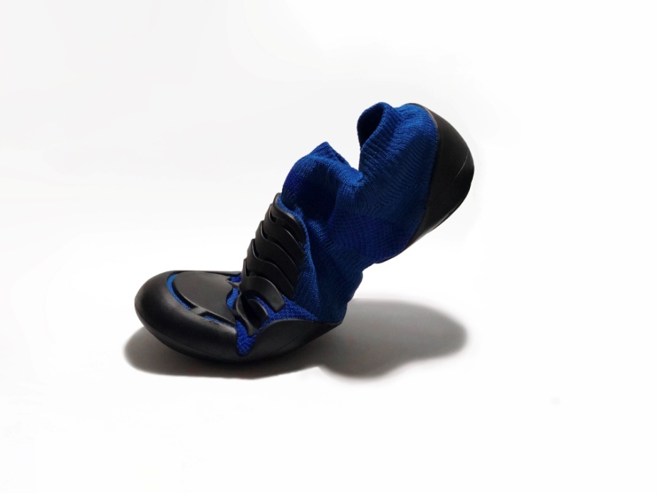 脚面造型尝试“鱼排骨”式的波状结构,保证了灵活性与保护性的统一。以缓冲航天员运动时产生的碰撞,脚部前端与后部设计饱满,不仅使穿着上更加舒适,而且造型更为立体。最终色彩上采用“深空蓝”与黑颜色结合的方案,黑色体现了时尚、科技的因素,同时与舱内工作服的蓝色相匹配、实现视觉搭配上的和谐感。