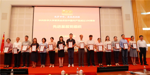 俞建勇表示,在学校党委的坚强领导下,学校各基层党组织和广大党员以习近平新时代中国特色社会主义思想为指导,全面贯彻党的教育方针,坚持社会主义办学方向,认真落实立德树人根本任务,奋勇争先、冲锋在前,为推动学校各项事业高质量创新发展开展了大量富有成效的工作。希望受表彰的优秀共产党员、优秀党务工作者和先进基层党组织,站在百年征程的新起点上,继续保持昂扬的工作劲头,以更加奋发有为的精神状态投入到学校各项工作中,再创佳绩、再立新功。他号召全校各级党组织和全体党员要向先进对标看齐,特别是要对照学党史、悟思想、办实事、开新局要求,以实际行动和优异成绩迎接党的百年华诞,为全面提高人才培养质量,加快“双一流”建设,加快建成“国内一流、国际有影响,有特色的高水平大学”作出新的更大贡献。俞建勇最后指出,当前正值庆祝中国共产党成立一百周年的重大时刻,也是“两个一百年”奋斗目标历史交汇的关键节点,同时,学校开启“十四五”发展,要立足百年新起点,更加自觉不忘初心、牢记使命,增强“四个意识”,坚定“四个自信”,做到“两个维护”,始终在思想上政治上行动上同党中央保持高度一致,激励和带动全体东华师生员工更好立足新发展阶段、贯彻新发展理念、构建新发展格局,砥砺奋进、锐意进取,为推动学校“十四五”更高质量创新发展提供坚强保障和不竭动力。