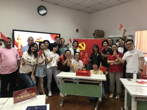 7月1日8点支部全体成员集中收看了庆祝中国共产党成立100周年大会,共同聆听了习近平总书记在大会上的重要讲话。应和着强烈的庆祝氛围,支部的四个党史学习小组以党的百年光辉征程为主线,开展了一堂别开生面的音乐党课。“红旗领航”组、“团结奋进”组、“砥砺前行”组、“创优争先”组,分别从革命战争时期、新中国成立初期的社会主义建设时期、改革开放新时期、中国特色社会主义新时代四个历史时期选取重要的历史事件,配合着自创的诗歌朗诵和经典红歌,有声有色的回顾了建党百年路。激情澎湃的礼赞以党员们依次报出党龄为结尾,呼应了百年仍是少年的朝气蓬勃。在党支部书记林惠英的带领下,全体支部党员共同重温入党誓词,铿锵有力、声声入耳,党员们神情庄重、慷慨激昂。