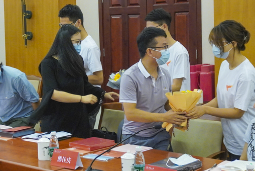 (学生代表向教师献花感谢师恩)