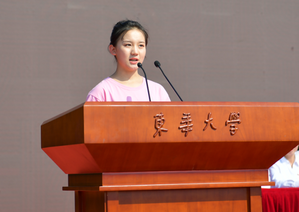“今天,我们有了共同的身份‘东华人’”。新生代表、旭日工商管理学院2021级新生李晓萌表示将秉承“崇德博学、砺志尚实”校训,勉励大家肩负重任,勇提志气;不负韶华,志增骨气;勇担使命,积蓄底气,志存高远、脚踏实地,不畏艰难险阻,勇担时代使命,为实现中华民族伟大复兴而奋斗。