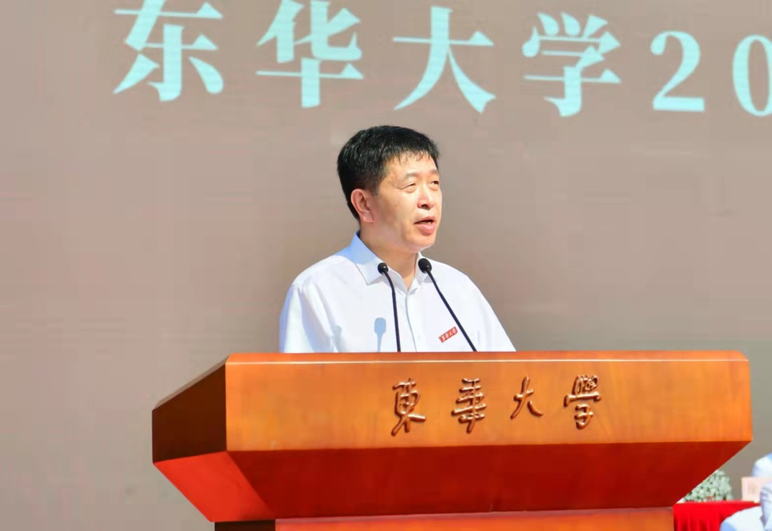 在校生代表、纺织学院2020级研究生王天增以自己五年的东华求学经历,为新生送上真挚寄语:勇于实践、勇于创造,不辜负青春年华,在中华民族伟大复兴的奋斗征程中发出东华人的时代最强音。