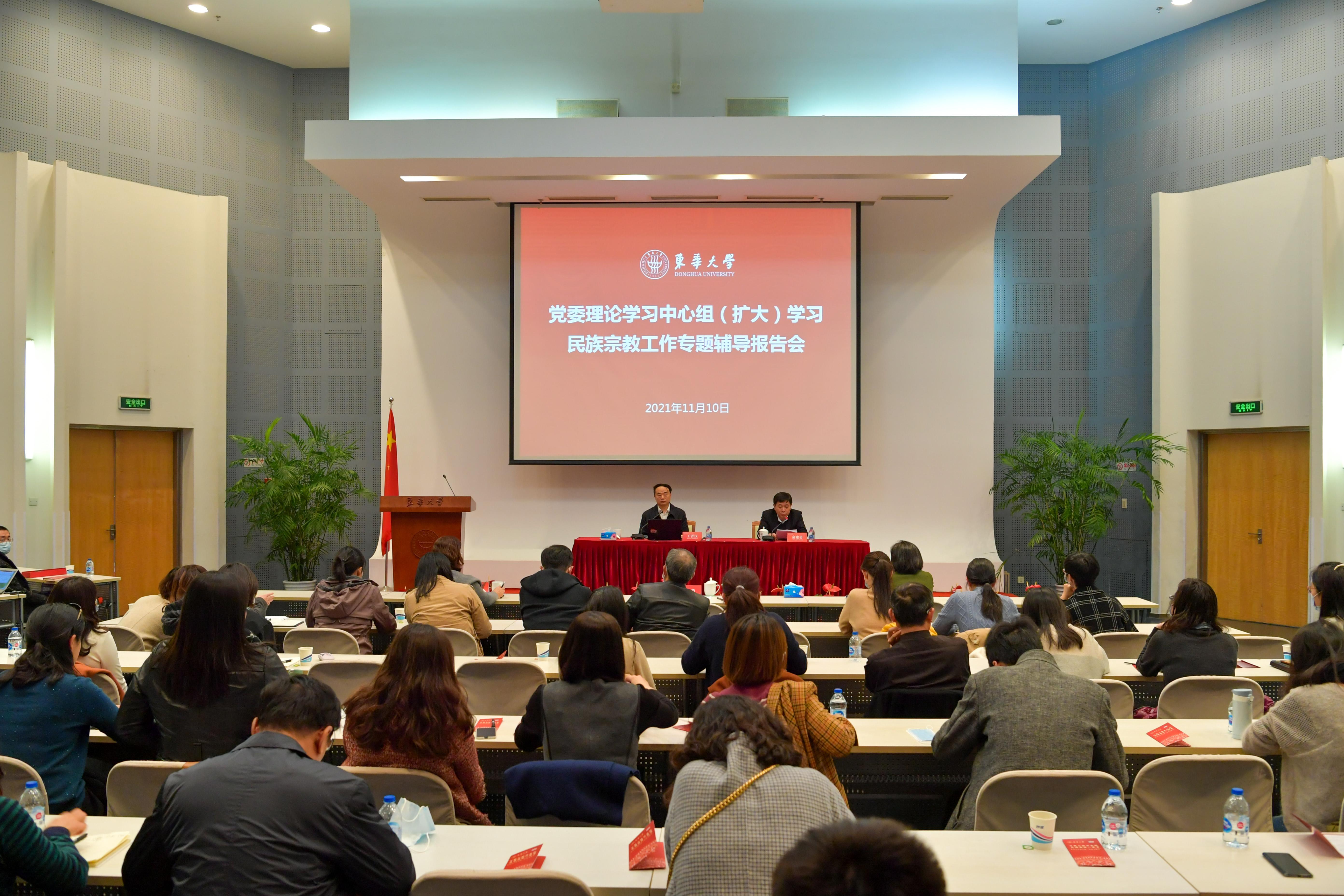 11月10日,学校在松江校区举行党委理论学习中心组(扩大)学习会,邀请上海市委统战部副部长、上海市民族和宗教事务局党组书记王霄汉作题为“党的民族宗教政策——学习习近平总书记民族宗教工作重要论述”的专题辅导报告。校长俞建勇,党委副书记崔运花,副校长李炜出席会议。俞建勇主持学习会。
