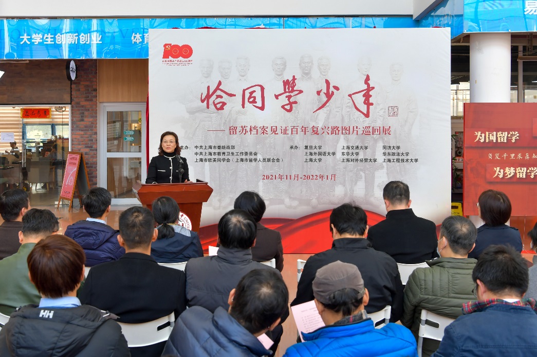 崔运花代表学校对市委统战部、市教卫工作党委、市欧美同学会对学校承展给予的指导和支持表示感谢。她指出,在建党百年的重要历史节点举办此次巡回展意义重大,学校将此次观展作为十九届六中全会精神的学习、“党史”学习教育、“四史”宣传教育以及党派团体骨干培训等的重要内容,希望广大师生能借此机会重温进步青年在我党选派下赴苏联学习的事迹以及留苏学子在立党、兴党、强党的百年奋斗征程中作出的历史贡献,弘扬优良传统,始终保持艰苦奋斗精神,争做勇立潮头的时代先锋。