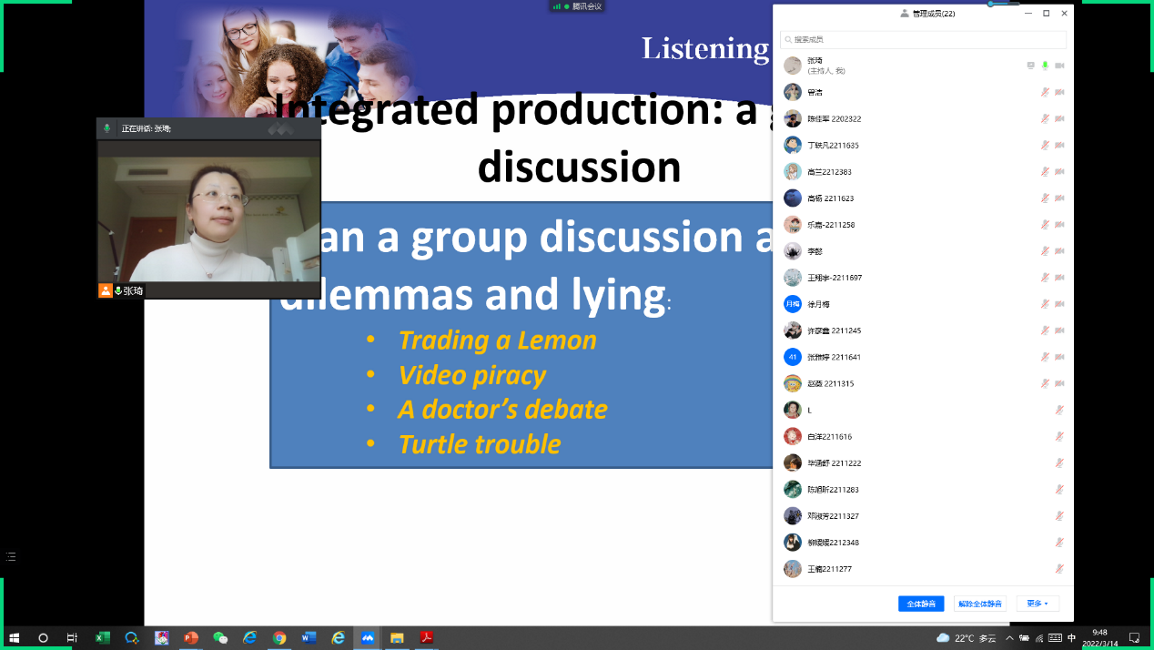 为了让同学们“抬起头”“张开嘴”,老师们也花了不少“小心思”。在外语学院张琦老师的“英语听说三”课堂上,师生“云端”相聚,正讨论得热火朝天。“线上授课学生注意力和专注度相对较弱,英语听说课程的开展尤其困难。”她利用在线教学平台的抢答、讨论等模块,增强课堂的参与度和互动性,让同学们直呼“一堂课过得好快”!