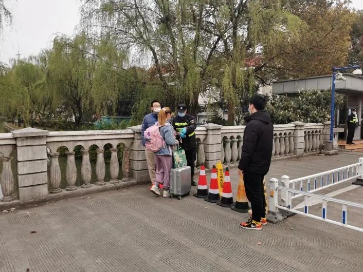 (校园转入准封闭管理安保人员严格核查出校凭证)