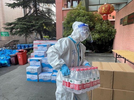 一早起床确认人员信息、发放早餐、开晨会,中午派送午饭,下午发水、发放晚饭,然后发抗原检测试剂盒,晚上组织体温检测、核酸检测,统计数据,期间还要见缝插针地发放特殊物资、检查防疫管理、处理突发情况,晚上很晚才能睡觉,这是驻楼老师每天的日常。