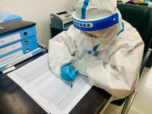 两校区隔离点严格按照“三区两通道”的防疫要求执行,员工上岗前自测体温,填写《体温监测表》,体温不超过37.3℃方可开始工作。按照隔离点相关工作要求,做好个人防护,为隔离人员配送生活物资,并对墙壁、地面、扶手、家具表面以及衣物、被单、生活垃圾等进行规范消毒。隔离点工作人员克服人手不足的困难,24小时奋战在工作岗位,因为需要长时间穿戴防护用具,他们少喝水、少吃东西,累了就靠在椅子上休息一下,贴身的衣服有时都是湿的。他们任劳任怨地工作在疫情防控最前线,用实际行动为守护师生平安贡献力量。