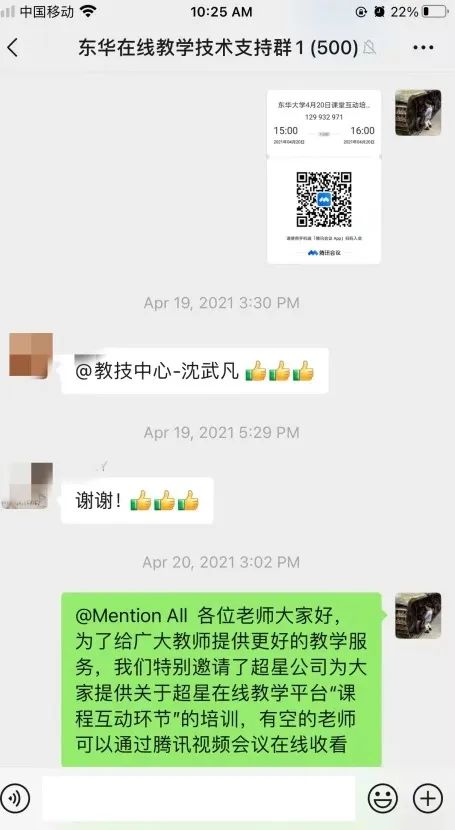 “遇到问题,老师和同学肯定都会手忙脚乱的,还好经过之前的线上教学,大部分老师对于线上课程已经驾轻就熟了,这次主要是新老师、新同学有些疑问,万事开头难,大家一起努力,相信很快大家都会成为在线教学的专家了!”教务处的王海红老师也时时在线为老师们“打气”。