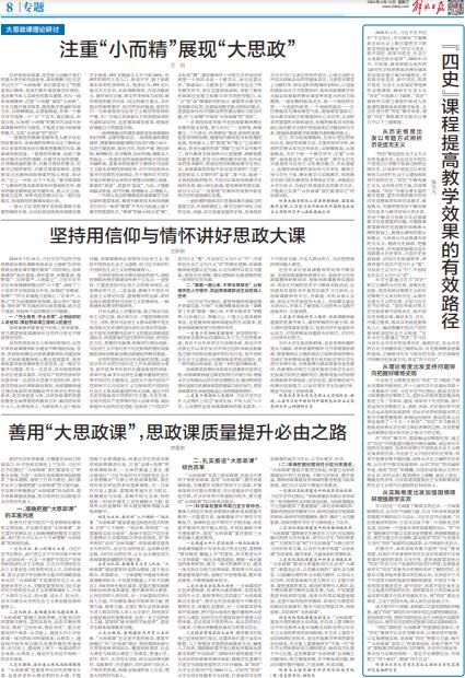 “四史”课程是“大思政课”的重要组成部分,在“四史”教育中以历史明晰未来、以理论筑牢根基、以实践增强实效,是汲取“四史”智慧与力量,践行“‘大思政课’善用之”的改革创新,有助于提升“四史”课程教学的政治性与学理性、历史性与辩证性、理论性与实践性相统一,坚定学生理想信念,牢固树立“四个意识”,增强“四个自信”。