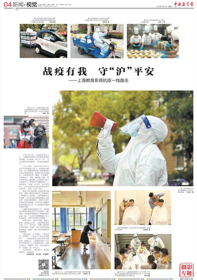 今年3月以来,上海疫情牵动人心。上海教育系统有力有序推进各项防控措施,众志成城,同心守“沪”,全力以赴筑牢疫情防线,守护师生健康安全。