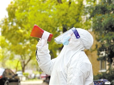 4月4日,上海建桥学院开展全员核酸检测,学校170名雷锋志愿者和55名退伍军人主动为大家服务。施楠 摄