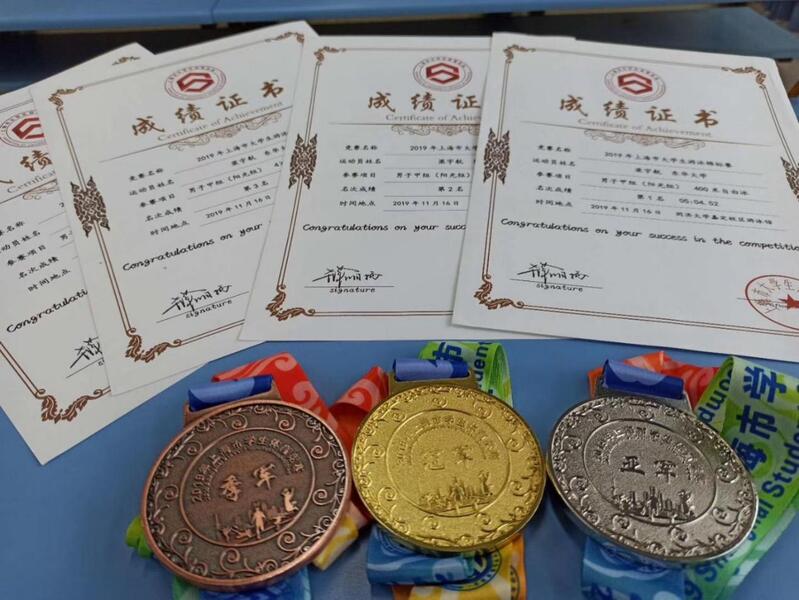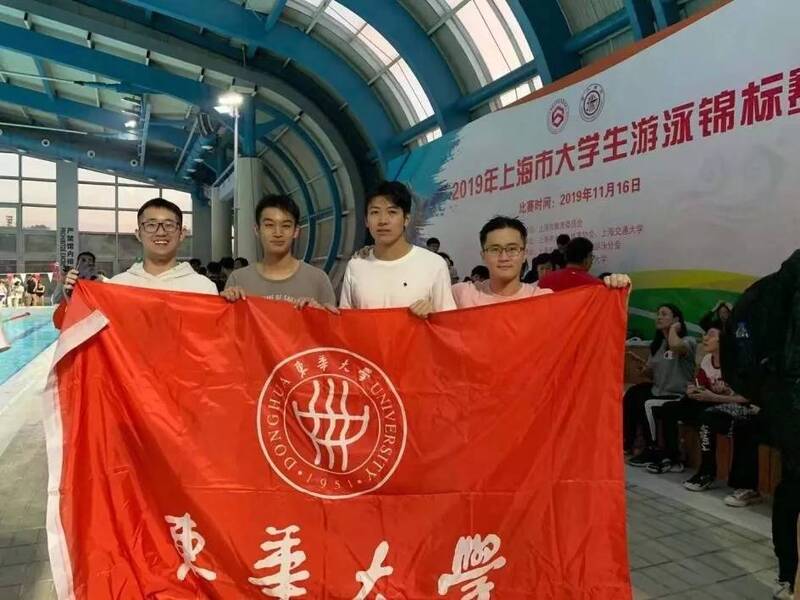 梁宇航(右二)代表学校参加上海市大学生游泳锦标赛斩获佳绩