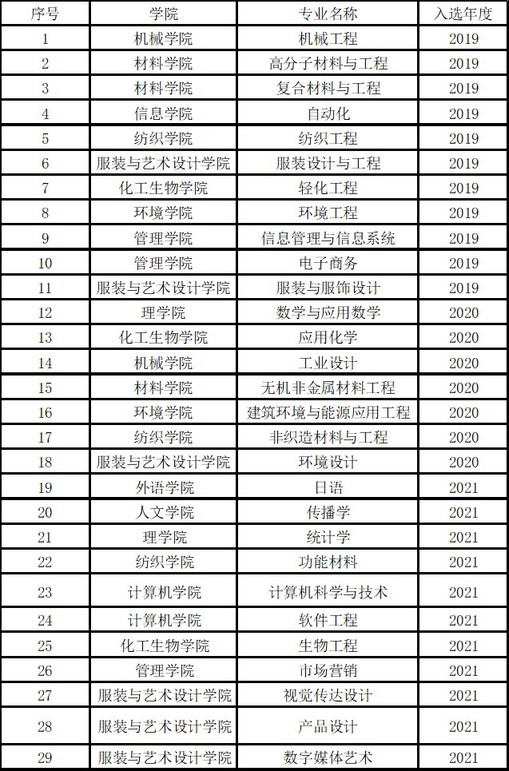 近日,教育部办公厅正式公布了2021年度国家级一流本科专业建设点名单,我校11个专业入选2021年度国家级一流本科专业建设点,1个专业入选省级一流本科专业建设点。目前我校共有29个专业入选国家级一流本科专业建设点,分布在工学、理学、艺术学、管理学、文学共五个学科门类,占招生专业数的52.7%,实现学院全覆盖。