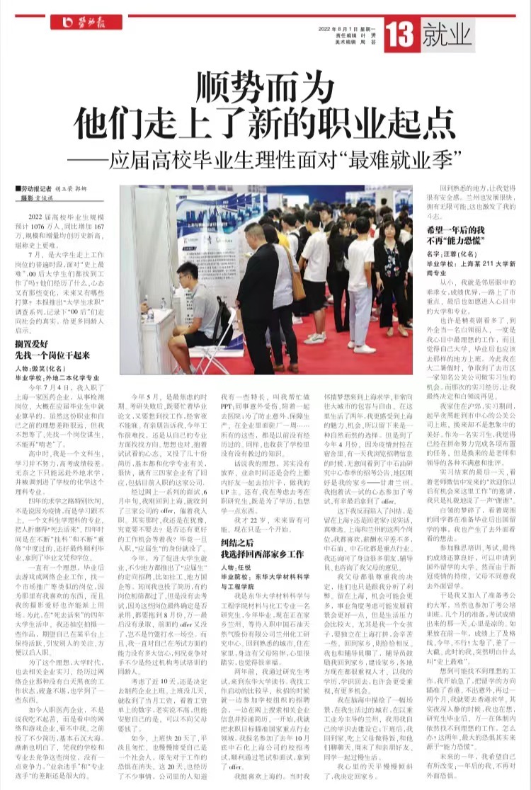 7月,是大学生走上工作岗位的普遍时段,但是面对“史上最难”,00后大学生们都找到工作了吗?他们经历了什么,心态又有那些变化,未来又有哪些打算?本报推出“大学生求职”调查系列,记录下00后们走向社会的真实,给更多同龄人启示。