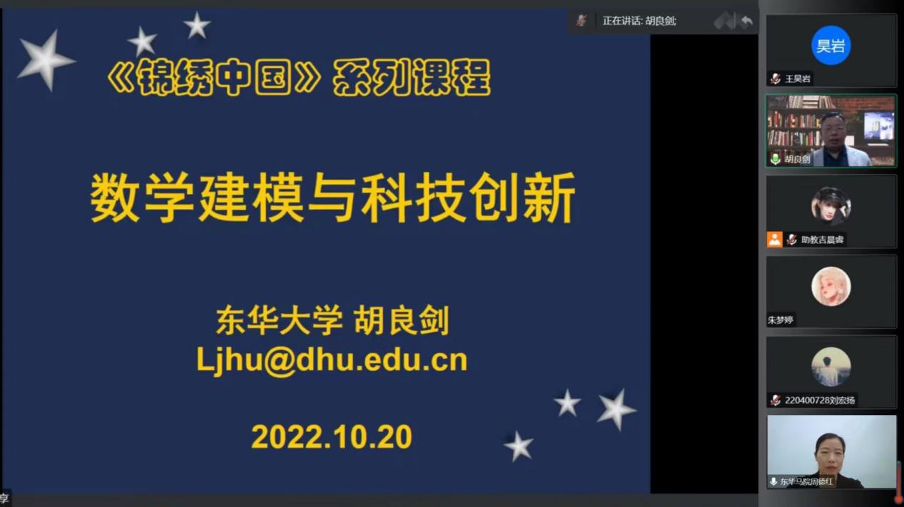 习近平总书记曾作出“加快建设科技强国,实现高水平科技自立自强”的重要论断,强调了科技创新在党和人民事业中的重要战略地位。那么数学建模与科技创新有什么密切联系呢?数学建模在科技创新中发挥着什么作用呢?10月20日,我校理学院胡良剑教授在《锦绣中国》线上直播课堂为同学们讲授“数学建模与科技创新”。