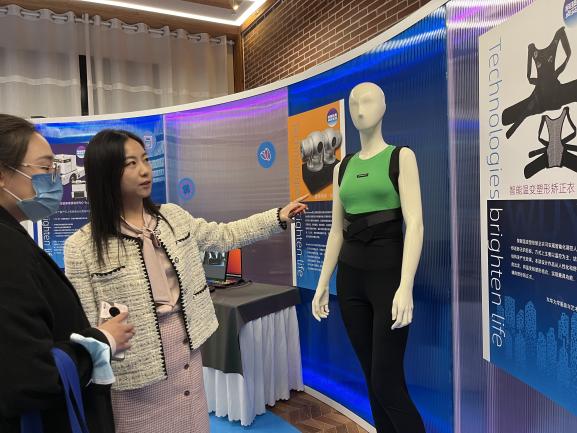 在活动中参展的服装与艺术设计学院服装艺术设计系张茜老师团队以提高生活质量、关注健康便捷生活的新智能化理念所打造的“智能温变塑形矫正衣”与“电理疗一体化智能运动装”也成为了一大亮点。体现了东华人通过设计连接科技与生活,通过研发智能可穿戴产品融合时尚与健康。