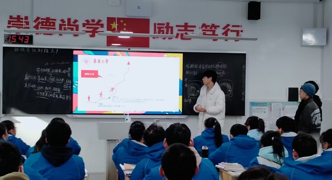 旧地重游,脑海中骤然浮现的是奋笔疾书的日日夜夜,“校园大使”用自己的成长故事,搭建起东华与生源地高中的纽带。陈颖、谢彦梓和章雨轩前往浙江省瑞安市上海新纪元高级中学,介绍了我校办学特色、培养模式,分享了自己的大学生活、高考填报志愿心得体会等。江苏省赣榆高级中学小分队则以视频形式介绍东华概况,并声情并茂地与学弟学妹分享充实多彩的大学学习生活经历。线上宣讲也如火如荼,河南省虞城县高级中学小分队通过“云宣讲”,绘声绘色地讲解了东华的优势与竞争力。“校园大使”耐心解答学弟学妹的疑惑,缓解他们的学习压力,为他们鼓劲加油。