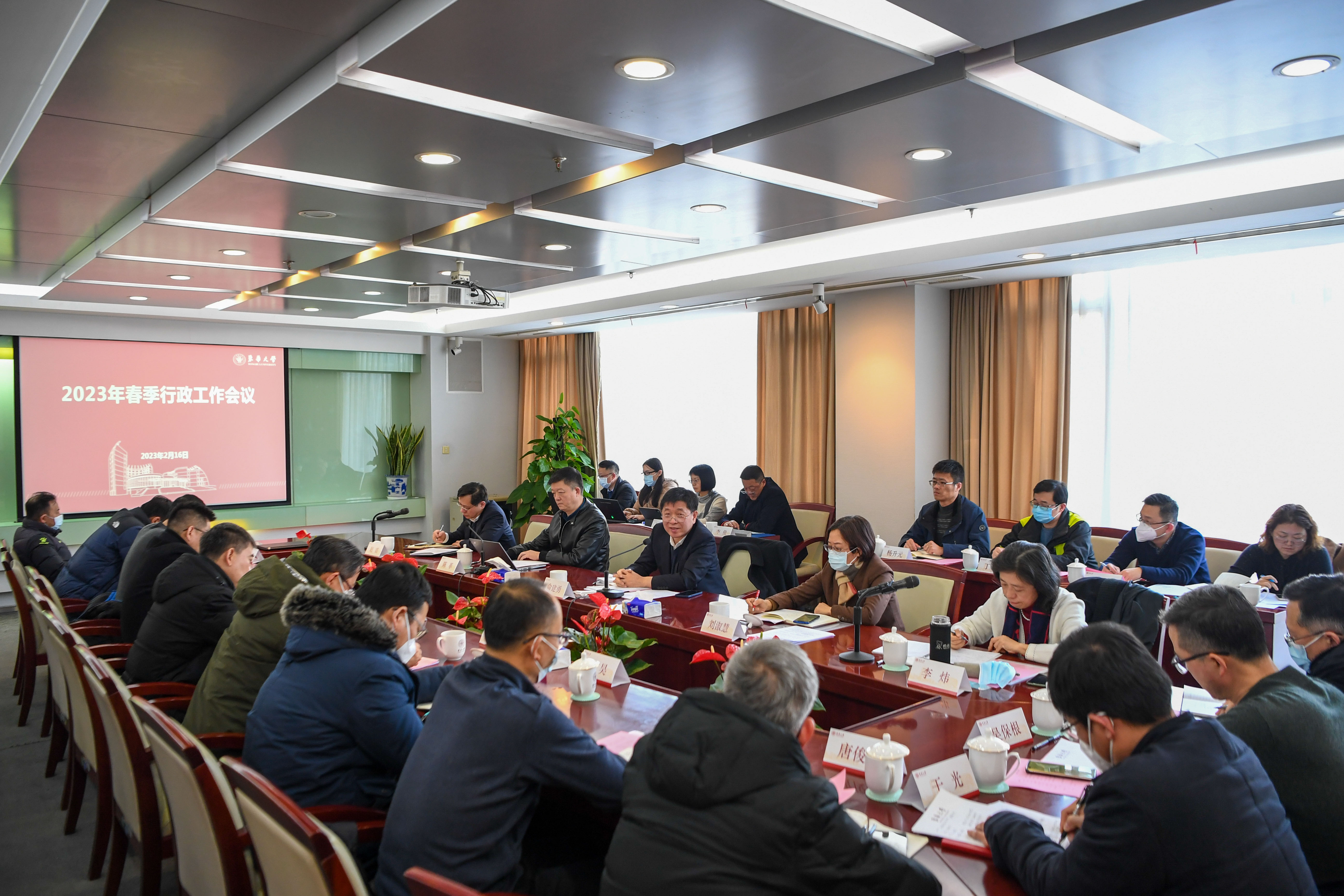 2月16日上午,我校在松江校区召开2023年春季行政工作会议。校长俞建勇,副校长刘淑慧、陈革、李炜、赵震出席会议。学校各行政职能部处、业务部门主要负责人与会。